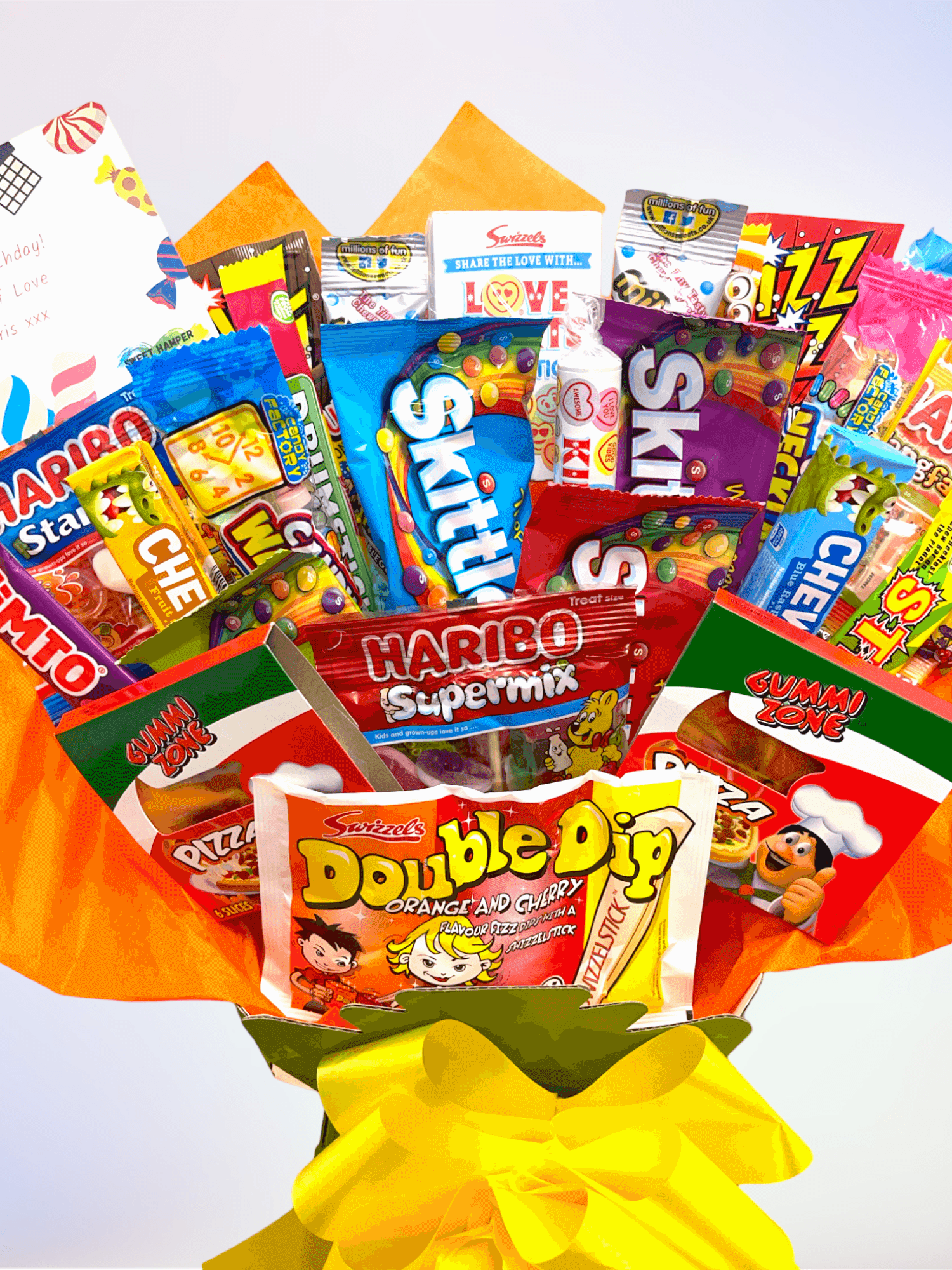 Skittles Chewy Crazy Sour Sweets, Skittles Chewy Sweets, Skittles Chewy Tropical Sweets, Skittles Chewy Wild Berry Sweets, Haribo Tangfastics Treat Bag, Haribo Supermix Treat Bag, Haribo Starmix Treat Bag, Gummi Zone Gummy Pizza Box, Gummi Zone Gummy Pizza Box, Fizz Wiz Strawberry Popping Candy, Fizz Wiz Cola Popping Candy, Swizzels Giant Love Heart Rolls, Swizzels Love Heart Candy Sticks, Barratt Flumps, Barratt Flumps, Swizzels Double Dip Original, Crazy Candy Factory Candy Necklaces, Crazy Candy Factory Candy Watches, Millions Bubblegum Tubes, Millions Bubblegum Tubes, Swizzels Drumstick Chew Bars, Swizzels Tropical Fizz Chew Bar, Swizzels Stinger Chew Bar, Swizzels Vimto Chew Bar, Chewits Fruit Salad Flavour, Chewits Blue Raspberry