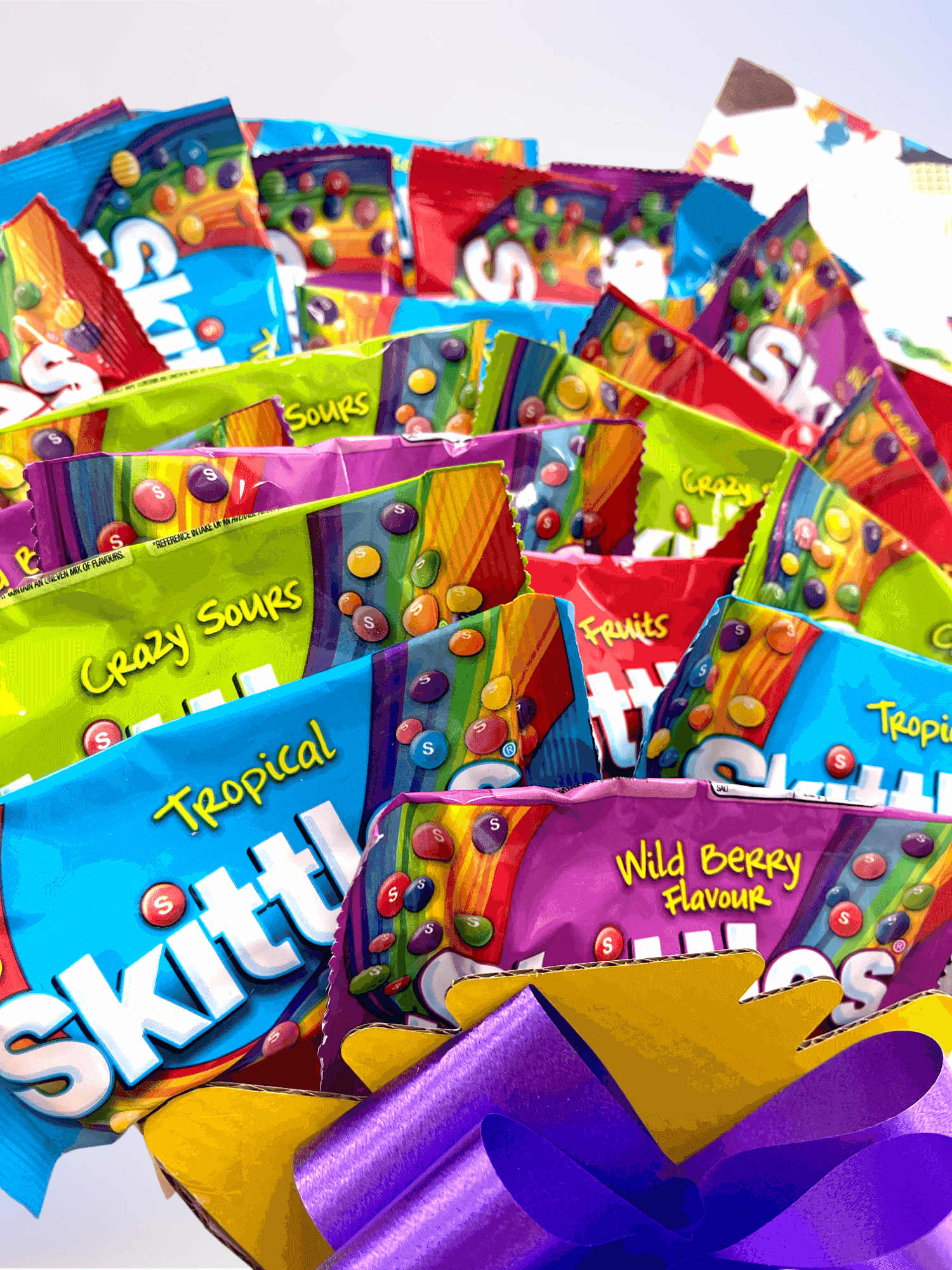 Skittles Chewy Crazy Sour Sweets x5, Skittles Chewy Sweets x5, Skittles Chewy Tropical Sweets x5, Skittles Chewy Wild Berry Sweets x5